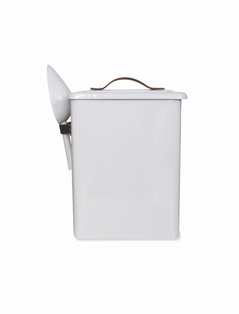 Avec sa base en acier poudré dans une très belle couleur neutre écru, et un couvercle , elle est livré avec une pelle en acier galvanisé et est fini d’une poignée en métal.