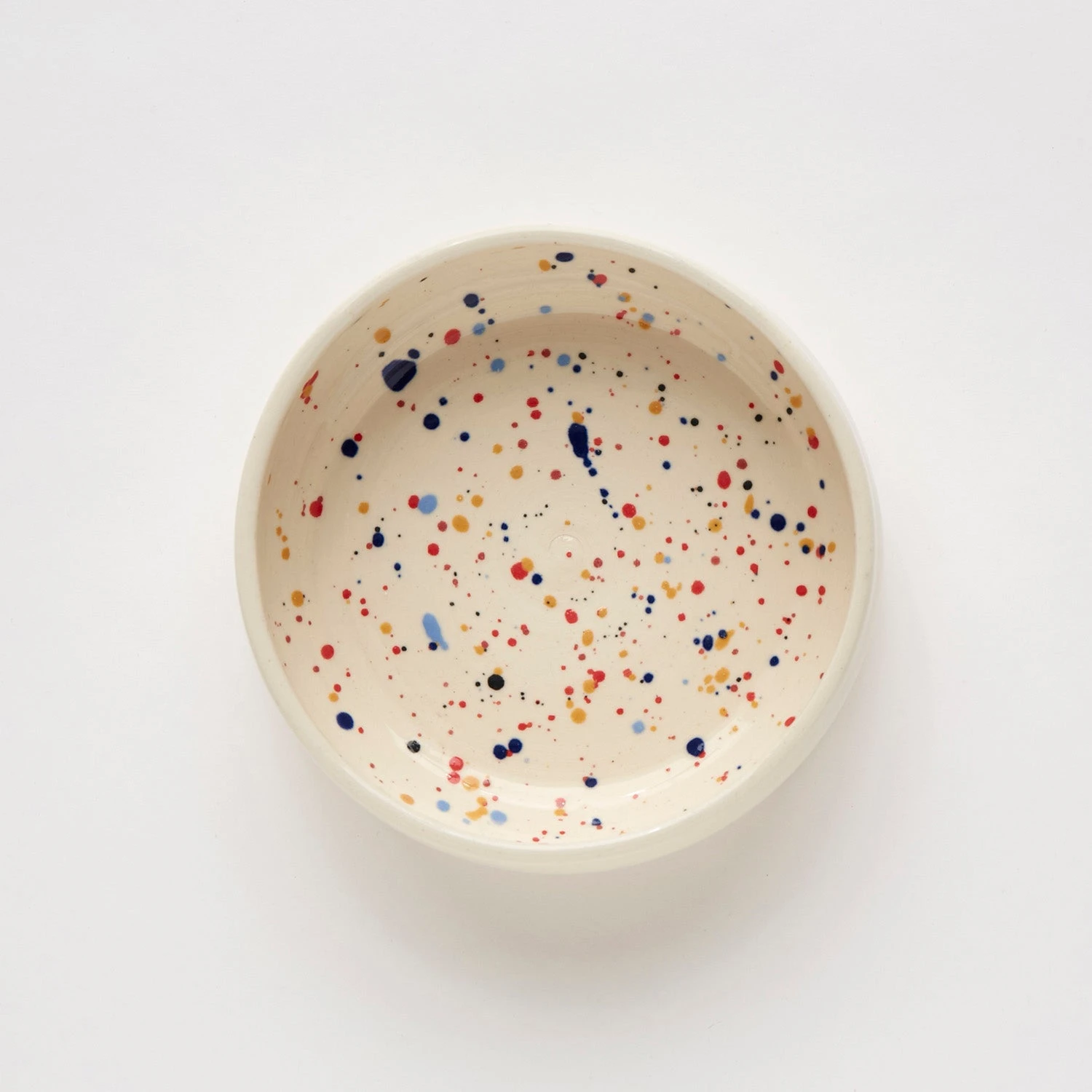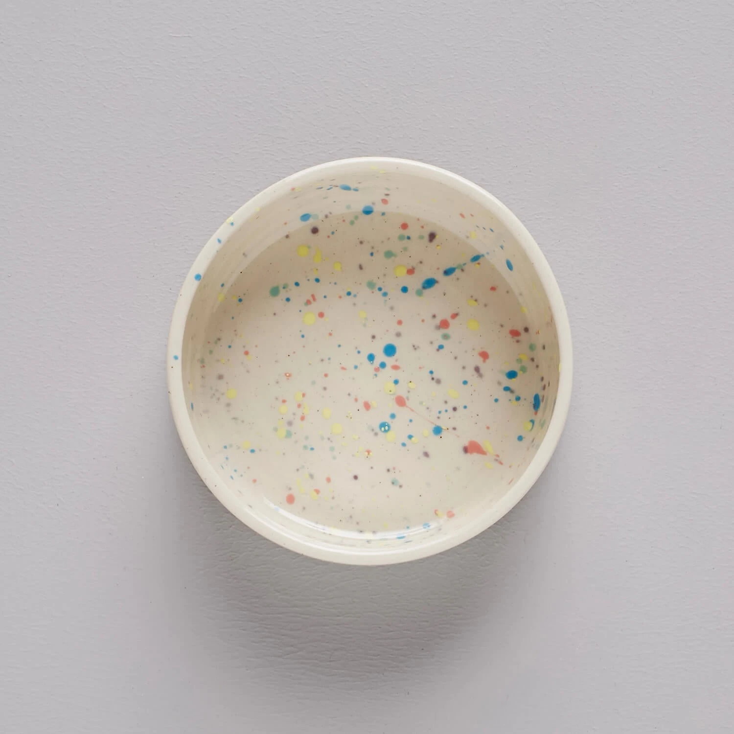 Ces gamelles pour chien artisanales sont disponibles dans deux versions avec mouchetage de différentes couleurs et dans deux tailles pour les petits et les grands appétits.