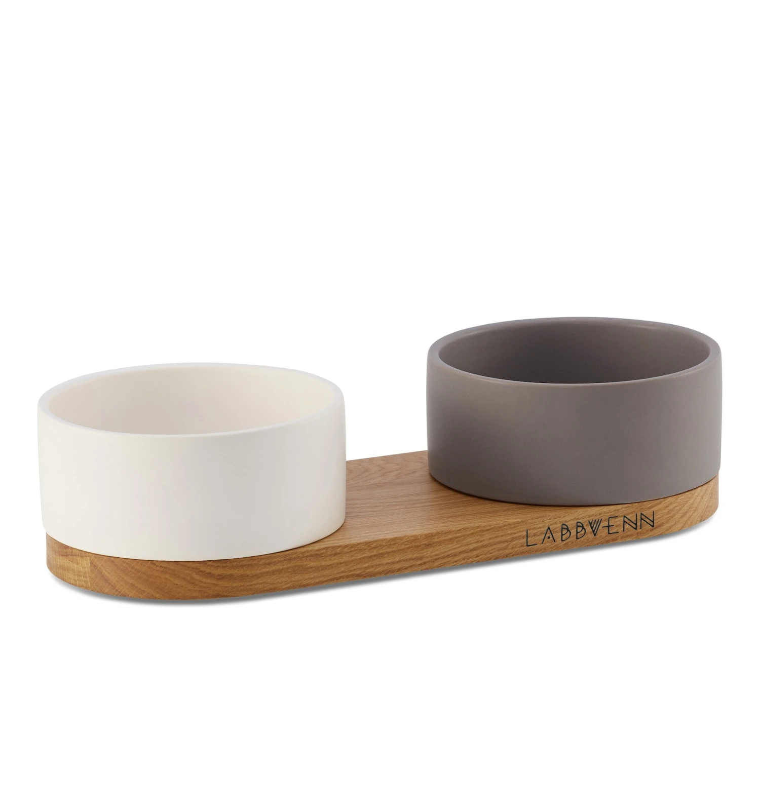 La proposition Double buffet possède un socle en bois chaleureux et élégant sur lequel reposent les 2 bol solidarisé par le bois.