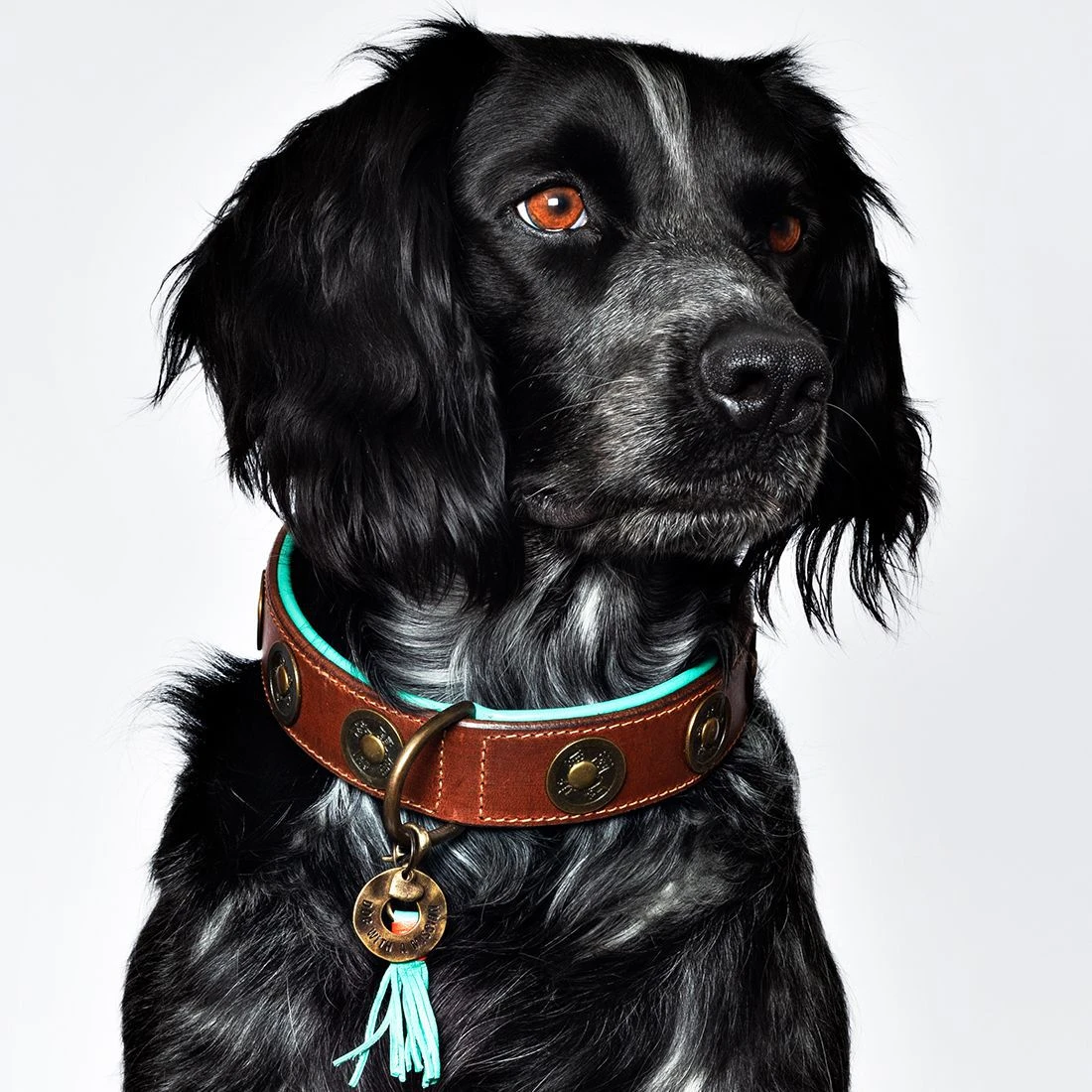Passionnées de voyage, les créatrices de Dog With A Mission ont ajouté une petite touche d’ailleurs à ce collier très mode avec des pièces de couleur bronze et d’inspiration asiatique.