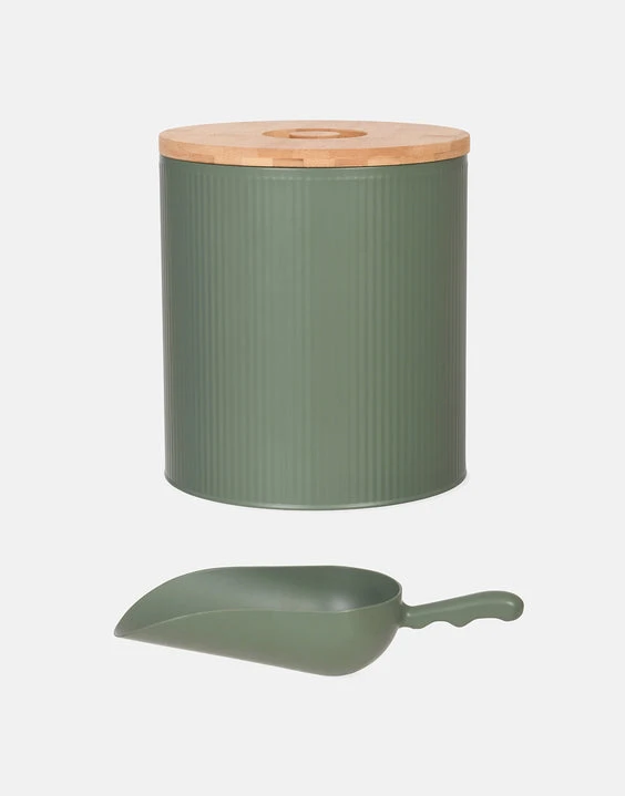 Cette boîte en acier est non seulement pratique mais offre un moyen élégant de garder les produits de vos animaux propres et bien rangés.