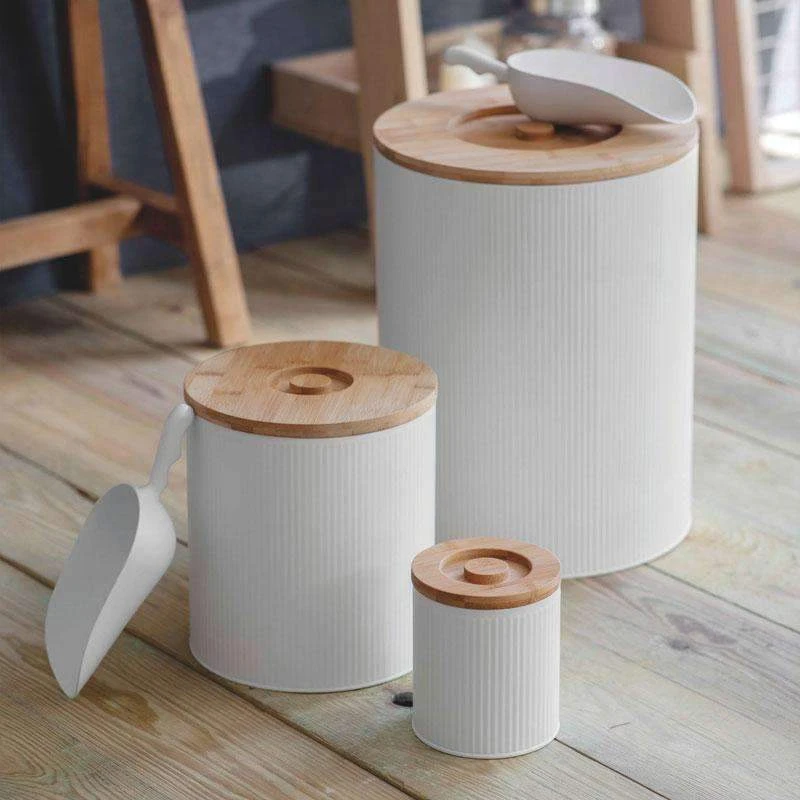 Suffisamment petite pour être placée sur un comptoir et suffisamment grande pour conserver une importante quantité de nourriture, cette boîte à croquettes est aussi discrète et élégante et sait se faire oublier dans la cuisine.
