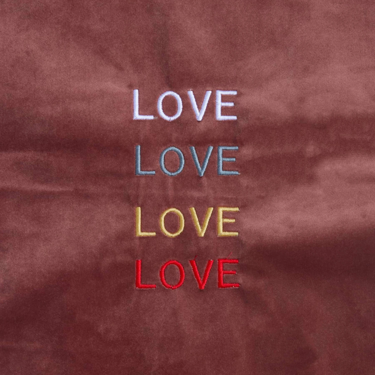 - Taille de la broderie : 1,5cm de hauteur pour les coussins M, 2,5cm de hauteur pour les coussins L et XL.