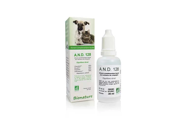 A.N.D. 128 stimule la fonction urinaire de votre animal de compagnie.