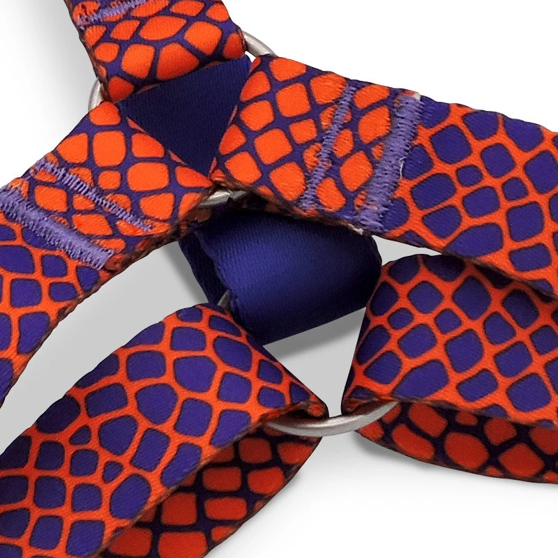 Ce harnais pour chien est fait de le satin de polyester innovant INTENSE™ : doux, résistant, lavable en machine à 40° et issu de bouteilles PET, 100% recyclé et recyclable.