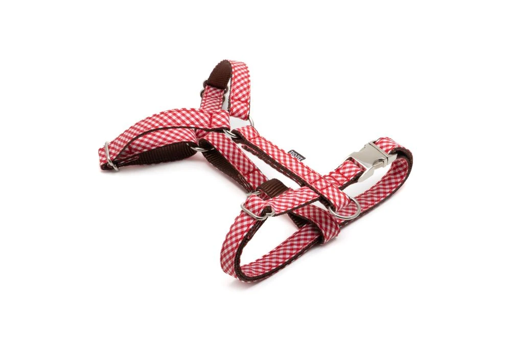 Le harnais en H pour chien en tissus Vichy rouge de Brott Dog allie style, confort et sécurité.
