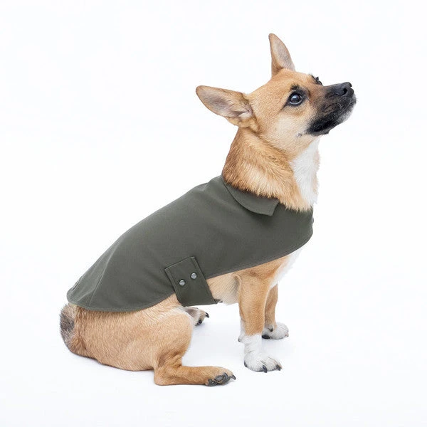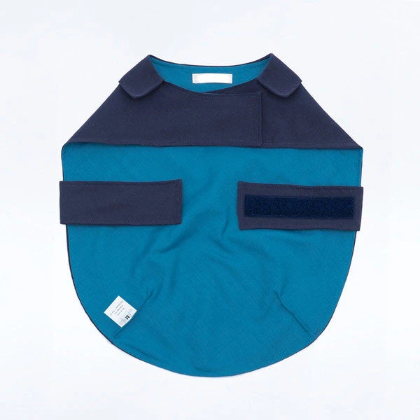 Imperméable pour bouledogue français haut de gamme fait à la main en Grande Bretagne. Il est fabriqué en microfibres de qualité dense.