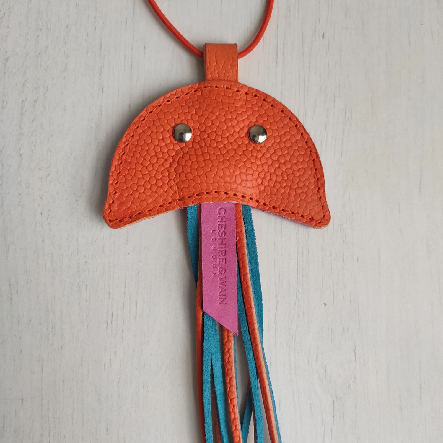 Le nouveaux jouets taquin Jellyfish est fabriqué à partir de chutes de cuir italien dans une gamme de couleurs vives avec des yeux argentés, une attache élastique de haute qualité et des tentacules pour que votre chaton puisse traquer et chasser!