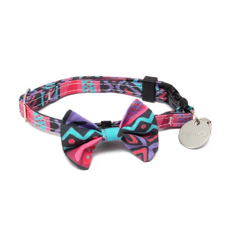Les nœuds papillon Hiro+Wolf pour chat sont légers, doux et disposent d’une boucle élastique qui les rend faciles à glisser sur le collier existant de votre chat ou assortis avec le collier pour chat Mud cloth de la marque éthique anglaise.