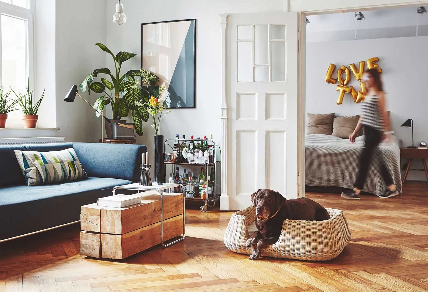 L’espace asymĂ©trique Ă l’avant du panier facilite l’accès au panier pour les petits chiens et leur permet de reposer confortablement leur tĂŞte tout en gardant leur environnement en vue. La palette de couleurs neutres du panier en osier et le coussin crème ont Ă©tĂ© soigneusement choisis pour s’intĂ©grer parfaitement dans tout intĂ©rieur moderne.