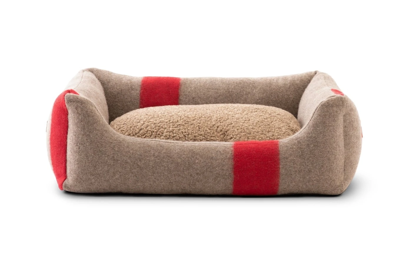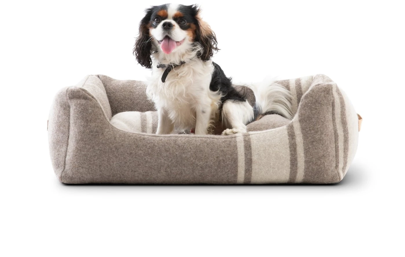 Panier pour chien doublé et recouvert d‘une laine recyclée fait à la main.