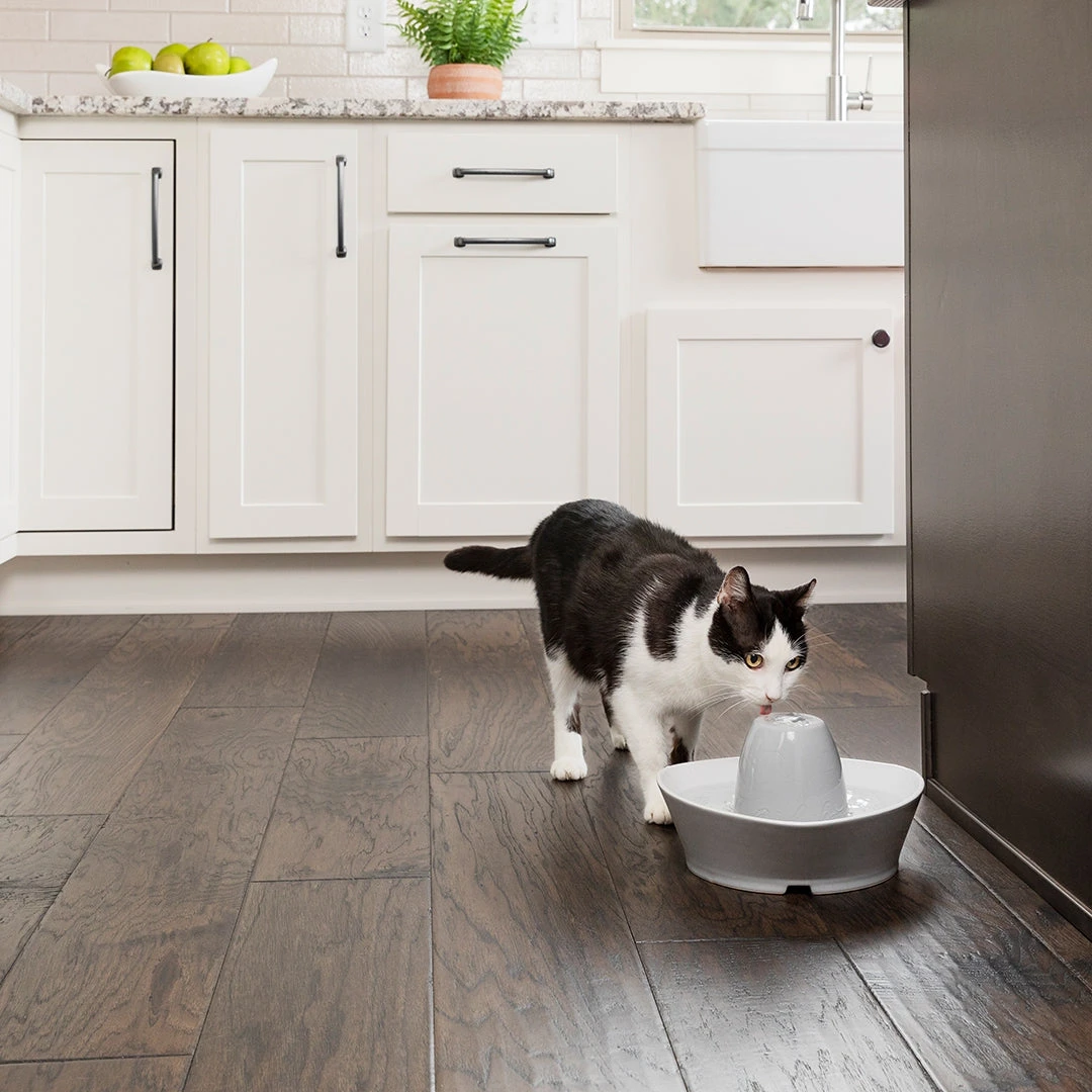 Son look contemporain en fait aussi une fontaine parfaite pour les chats craintifs, avec son écoulement « bord du ruisseau ». Cette fontaine de qualité a été conçue pour éviter les éclaboussures.