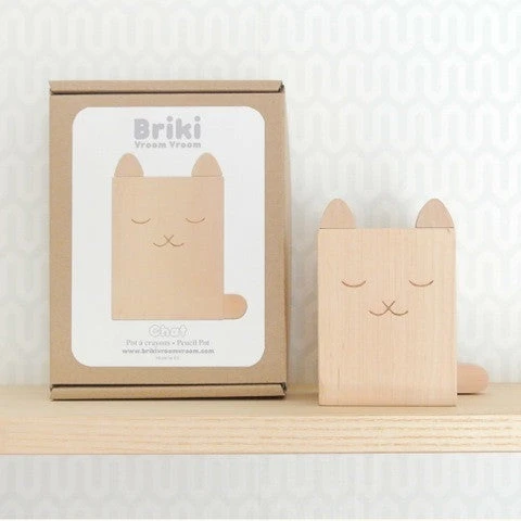 Pot à crayons Chat en bois d’aulne. Fabriqué de façon artisanale en UE. Gravé à la main.